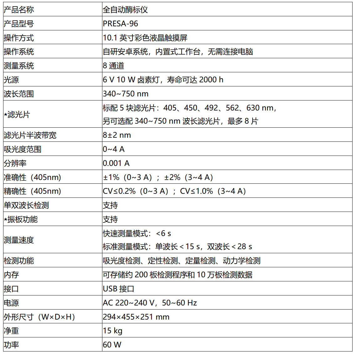 用自主研发的安卓系统,96孔可视化布板,可独立完成样品的检测和分析,包括吸光度分析、定量分析、定性分析、质控分析等,操作简便,无需额外配置电脑,占地空间小。