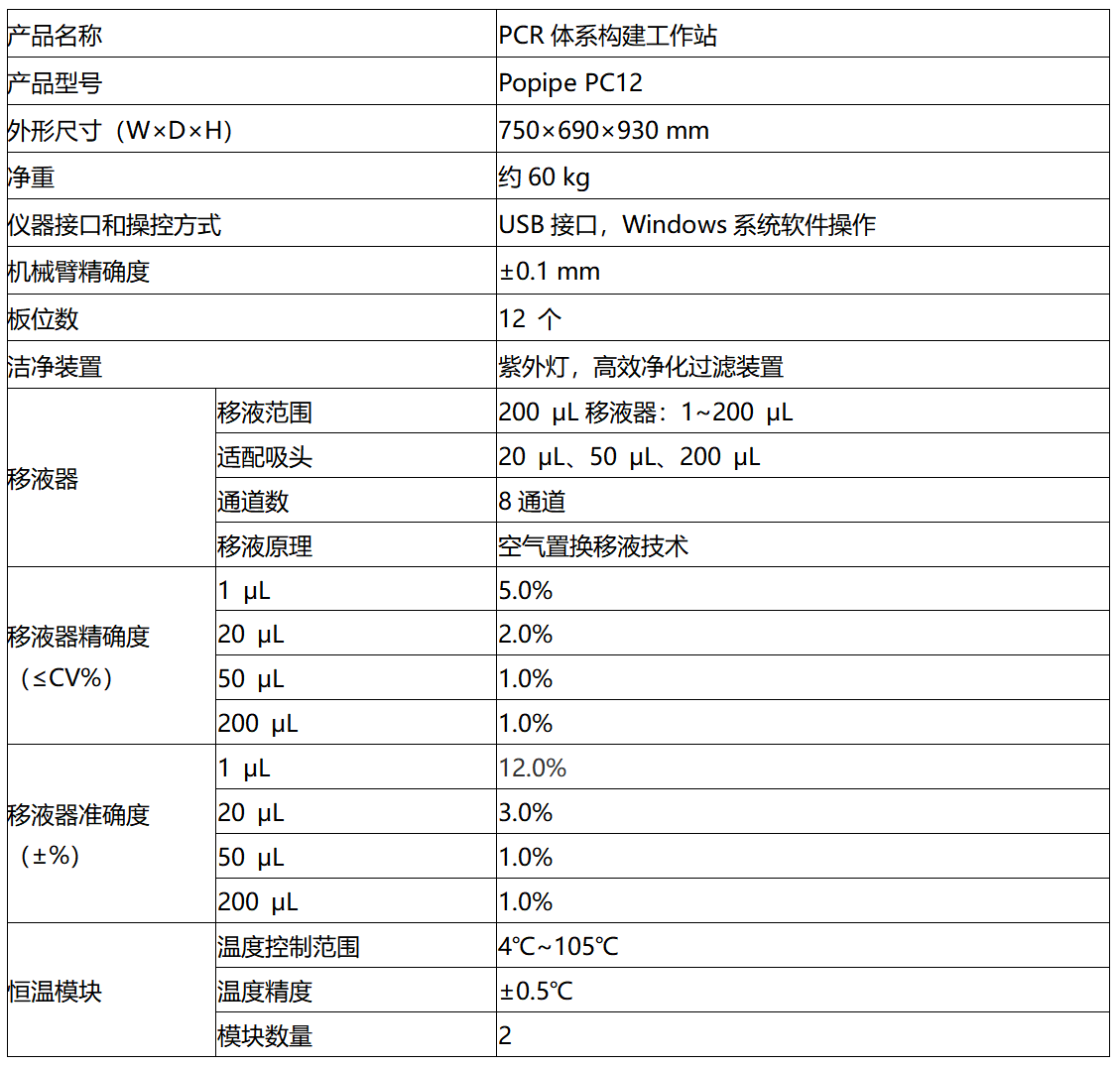 Popipe PC12 PCR体系构建工作站是专门为PCR体系自动化构建而设计的工作站,可满足普通PCR、荧光定量PCR等实验要求的96/384孔板的体系构建。PCR体系构建工作站大幅提高了工作效率,同时避免了人为操作带来的误差以及污染。