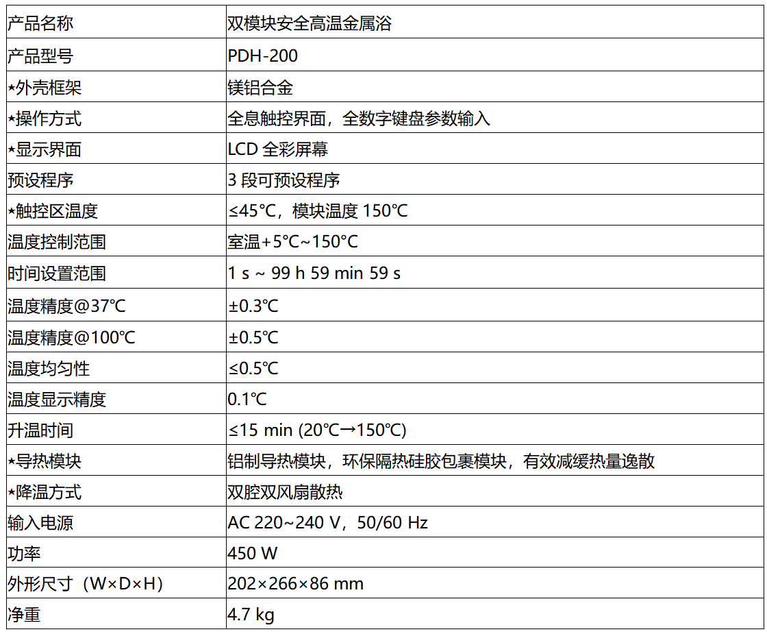 PDH-200双模块安全高温金属浴是一款防烫式新型恒温产品,最高温度可达150℃。全数字键盘全息触控式,具有美观、易操作、保温效果好、加热均匀等优点。采用微电脑控制,控温精度高,制样平行性好,可以代替传统的水浴装置,可广泛应用于样品的保存和反应、DNA扩增和电泳的预变性、血清凝固等。可用作细胞复苏仪。