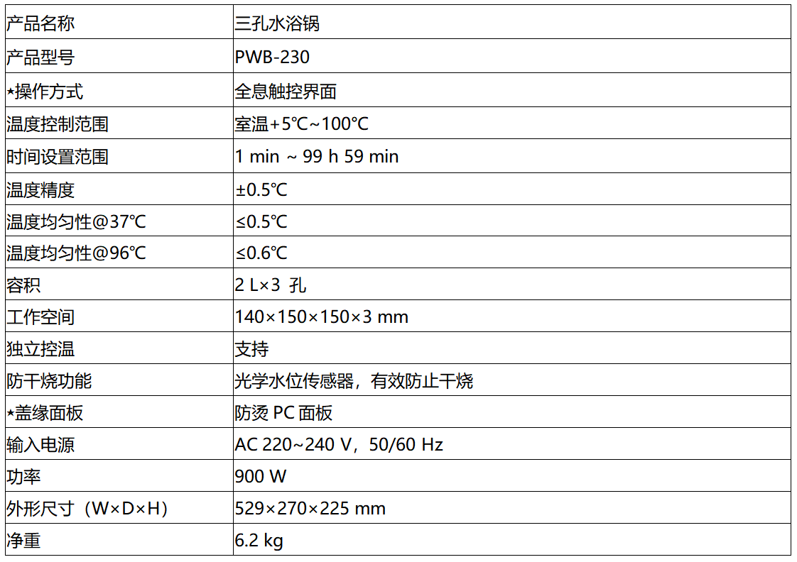 PWB-230三孔水浴锅可以对样品进行均匀地加热控温,可广泛用于干燥、浓缩、蒸馏化学试剂、药品和生物制品。