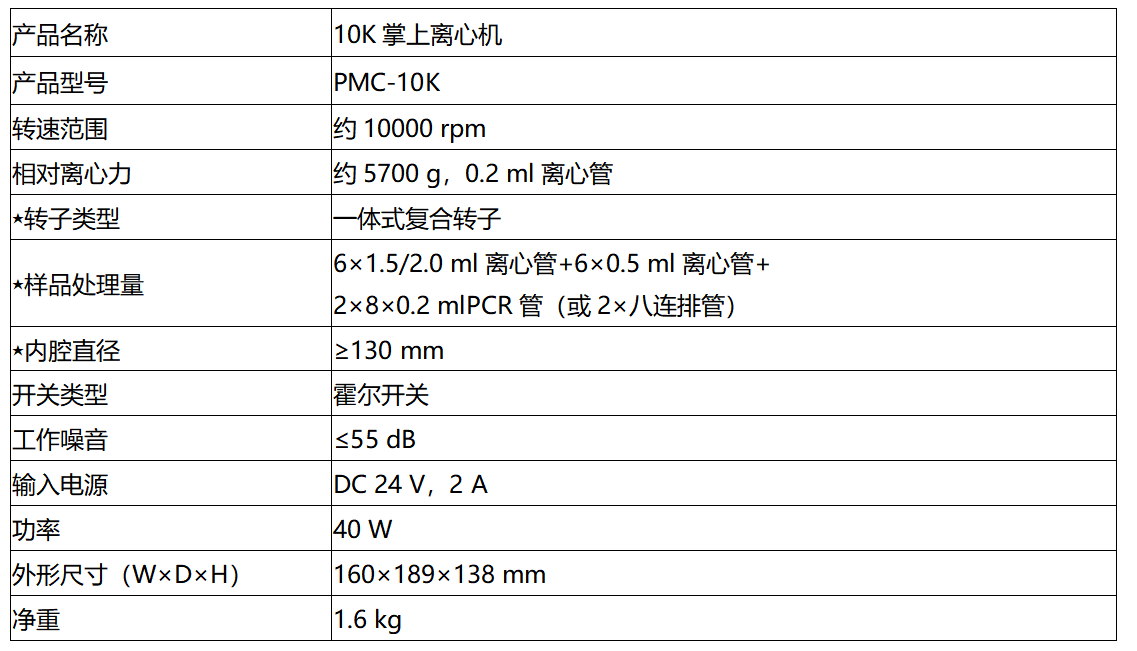 PMC-10K掌上离心机占地空间小,操作简便,搭配一体式复合转子,适合2.0 ml、1.5 ml、0.5 ml、0.2 ml离心管和八连排管在10000 rpm的离心操作。