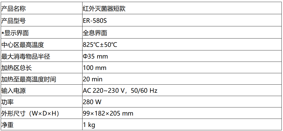 ER-580S红外灭菌器短款应用于接种环、接种针等小型物品的高温消毒,可替代酒精灯使用,可在厌氧环境中使用,使用安全,400℃和800℃两档可调,轻便易携带,可广泛应用于生物安全柜、净化工作台、抽风机旁、流动车上等环境中,甚至野外等恶劣环境下。