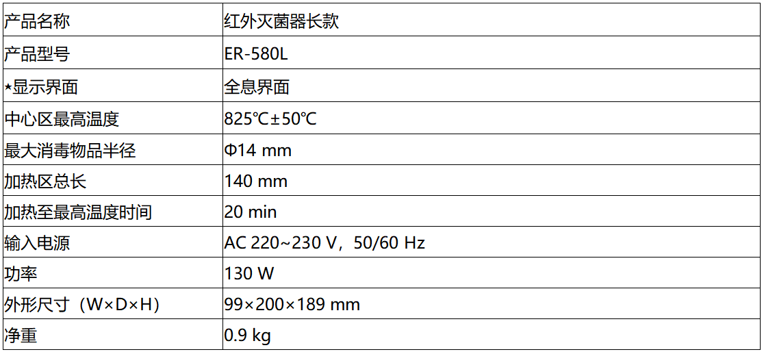 ER-580L红外灭菌器长款应用于接种环、接种针等小型物品的高温消毒,可替代酒精灯使用,可在厌氧环境中使用,使用安全,400℃和800℃两档可调,轻便易携带,可广泛应用于生物安全柜、净化工作台、抽风机旁、流动车上等环境中,甚至野外等恶劣环境下。